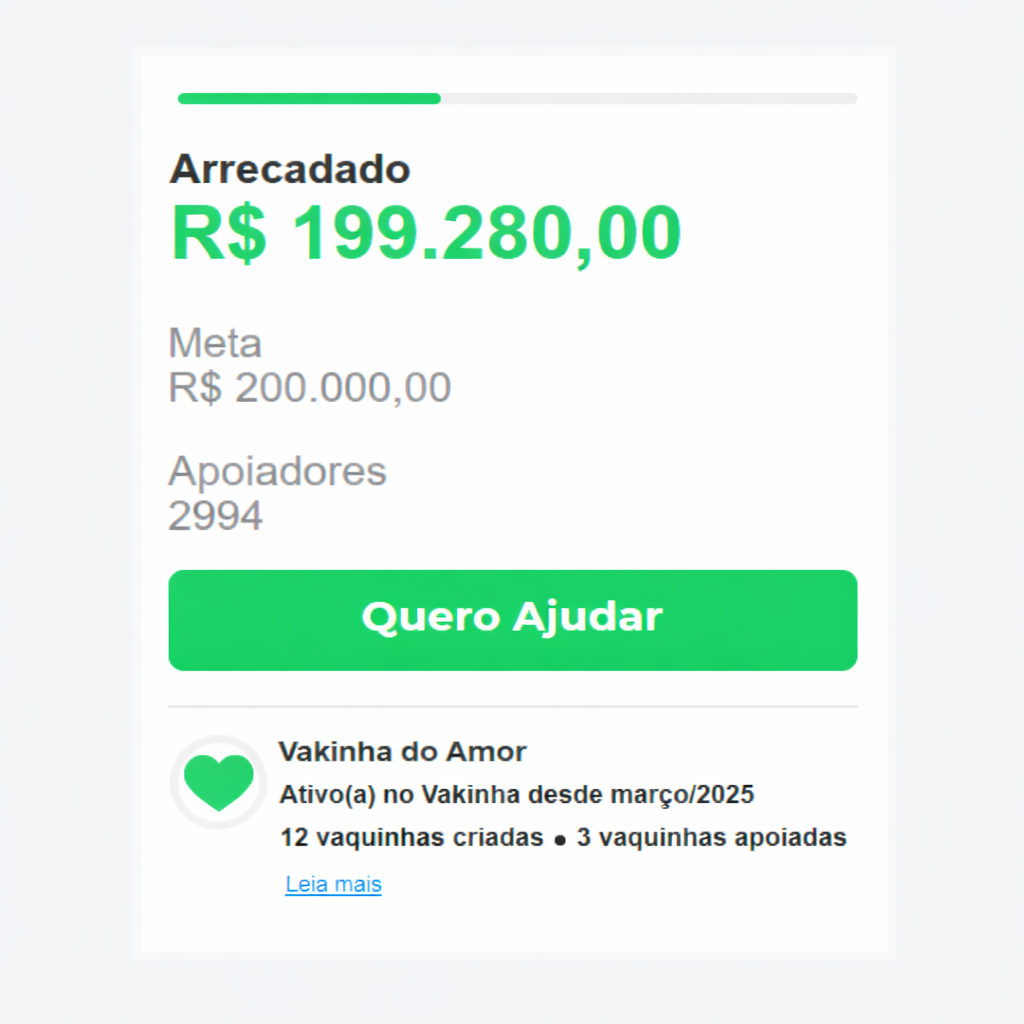 Ativo(a) no Vakinha desde março/2025
